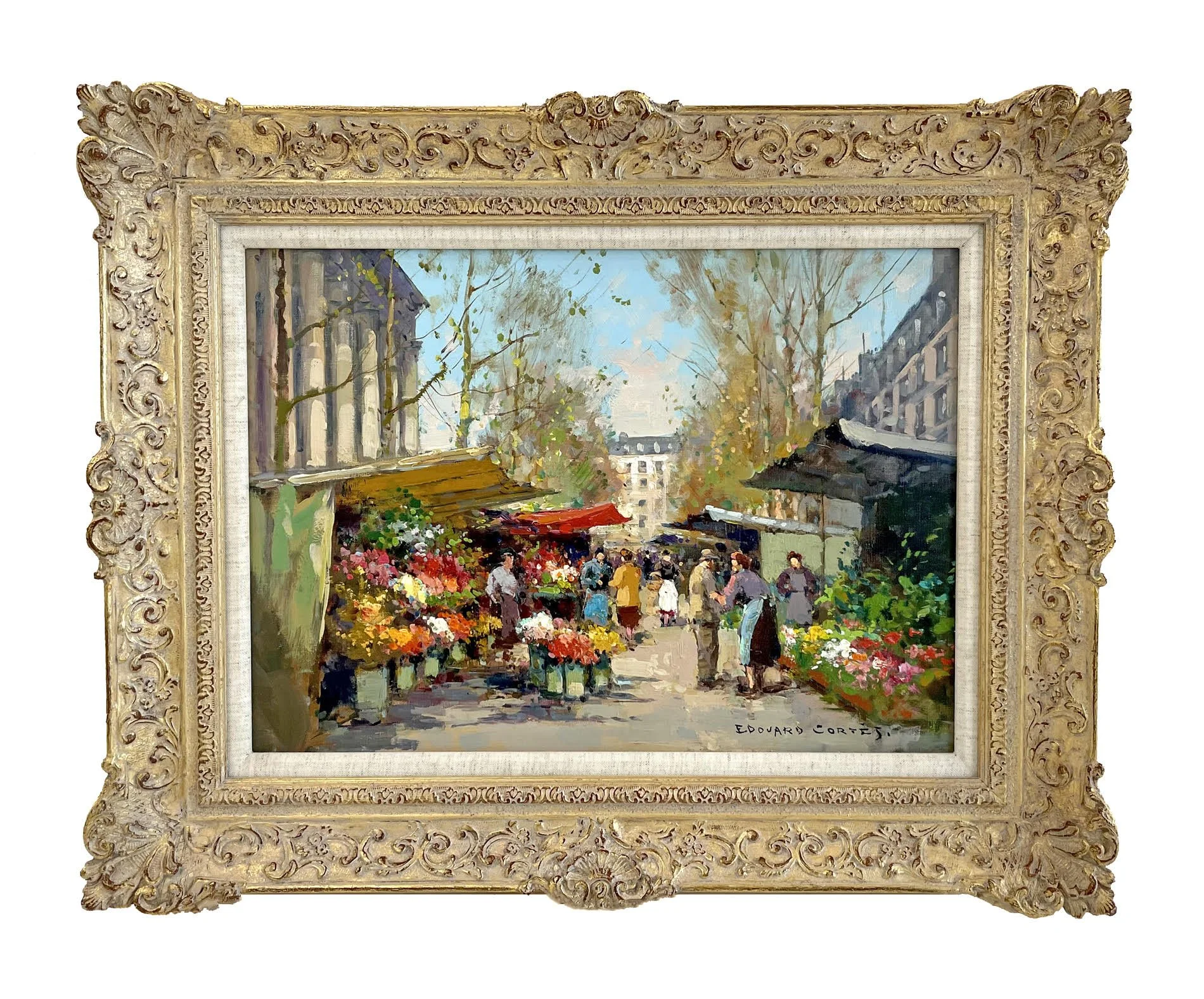This Cortès, entitled Flower Market Madeleine was being offered for sale in 2023 by Carnes Fine Art, a dealer in Mawdesley, England. Carnes purchased the artwork in November 2022 at Capes Dunn auctions, which have been operating outside of Manchester, England since 1826. The painting had been consigned to Capes Dunn in 2022 by a Cheshire estate who confirmed that it was acquired from the MacConnal-Mason Gallery in London.